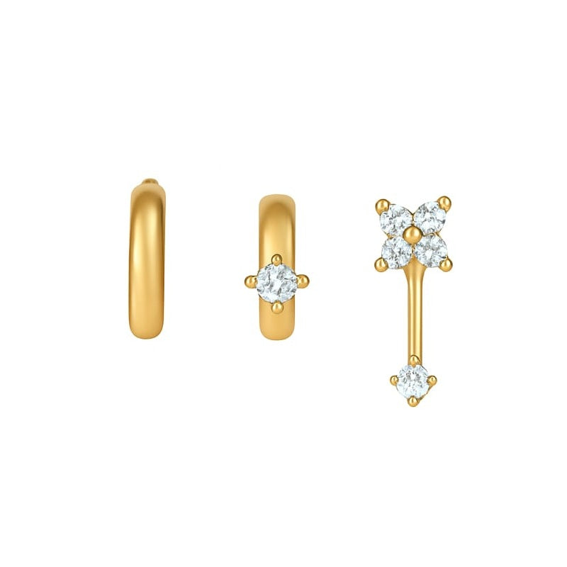 Huggie and Flower Drop Stud Set