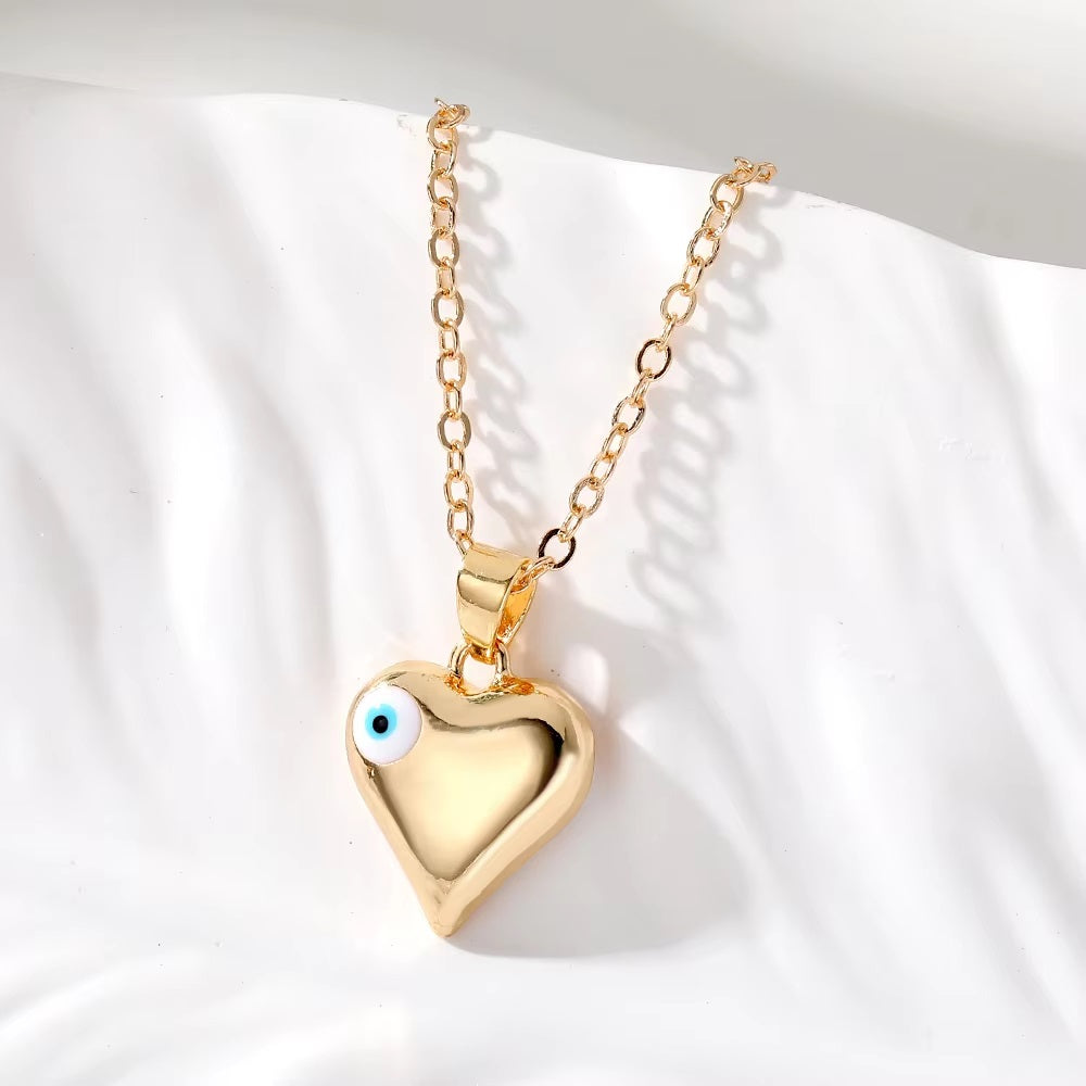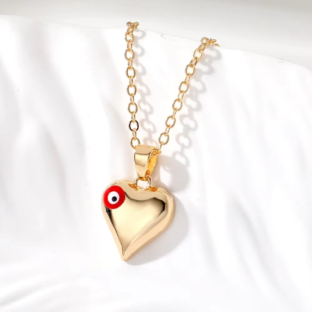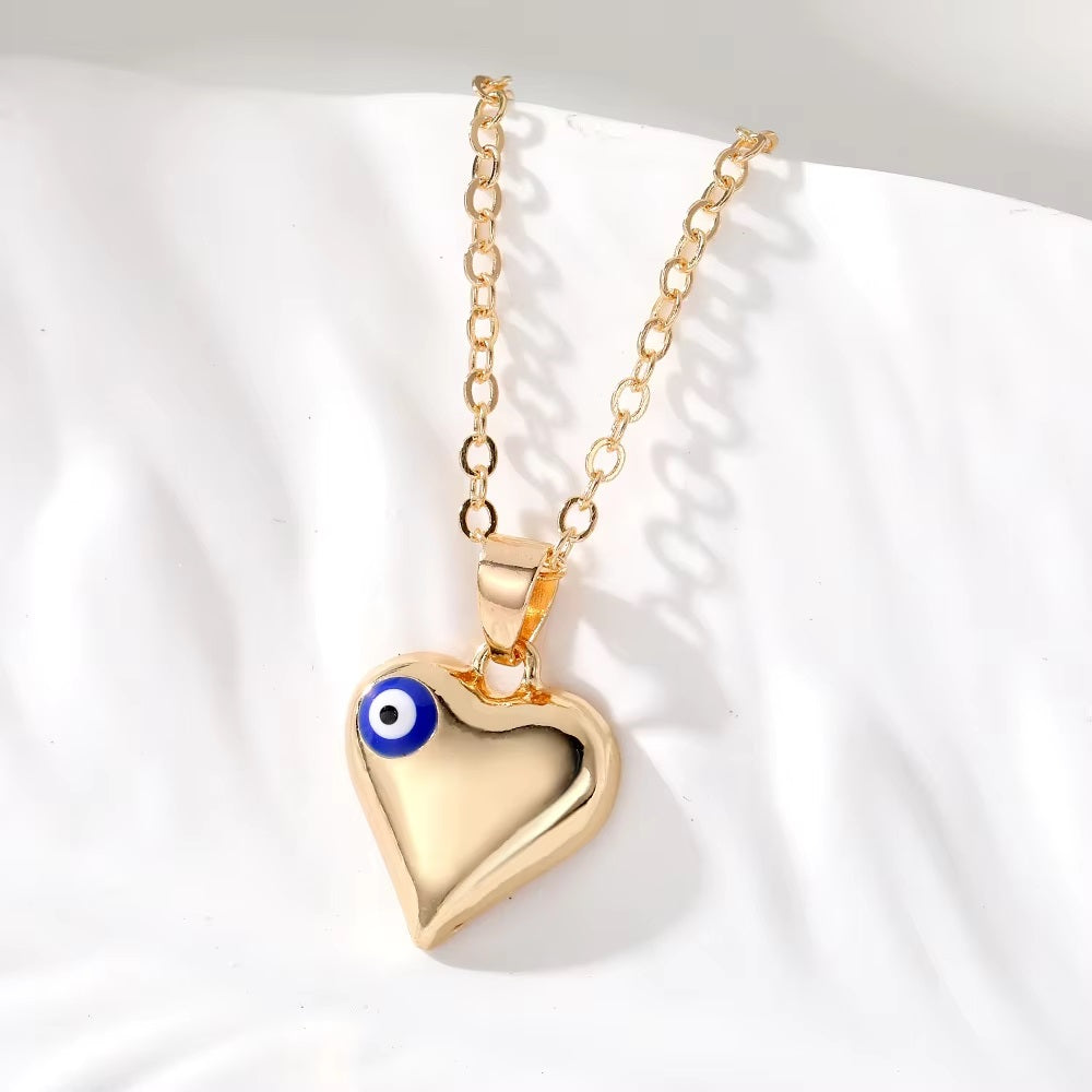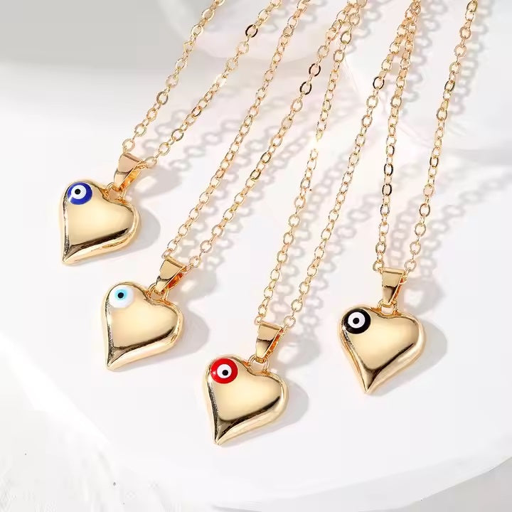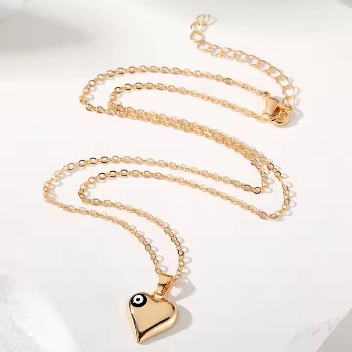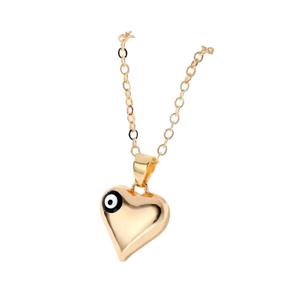 Gold Heart Evil Eye Necklace