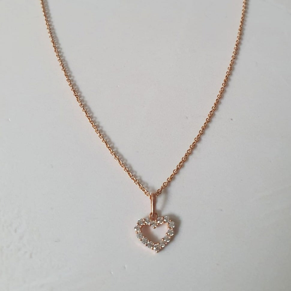 Cubic heart frame pendant on a gold necklace