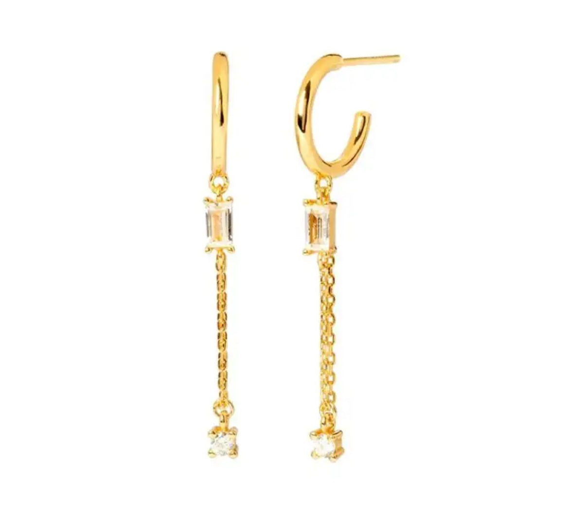 Baguette Drop Chain Hoops